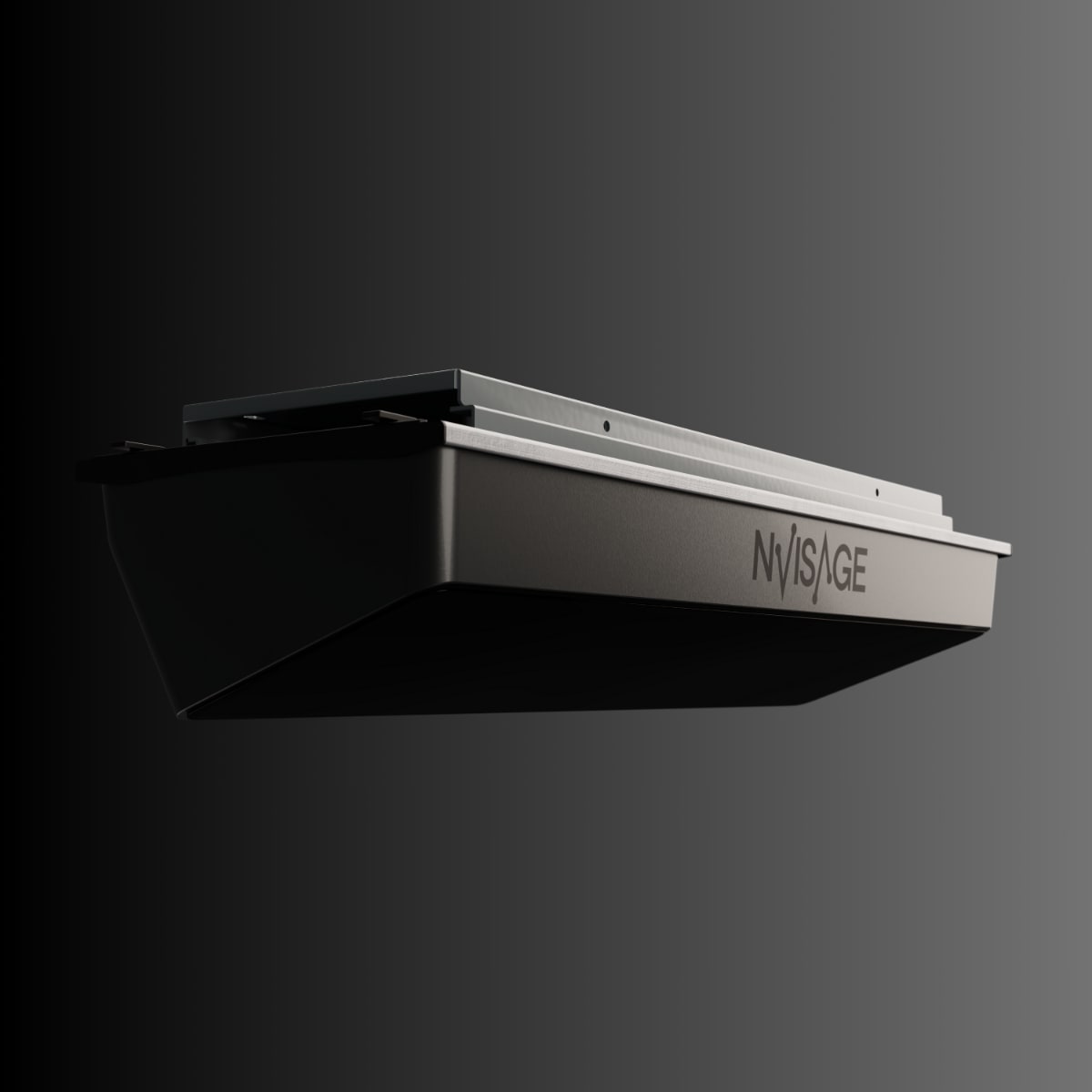 The NVISAGE N1 is a ceiling-mounted launch monitor. For optimal performance, it should be installed 9 to 10 feet above your hitting mat and positioned 2 feet in front of your tee area.